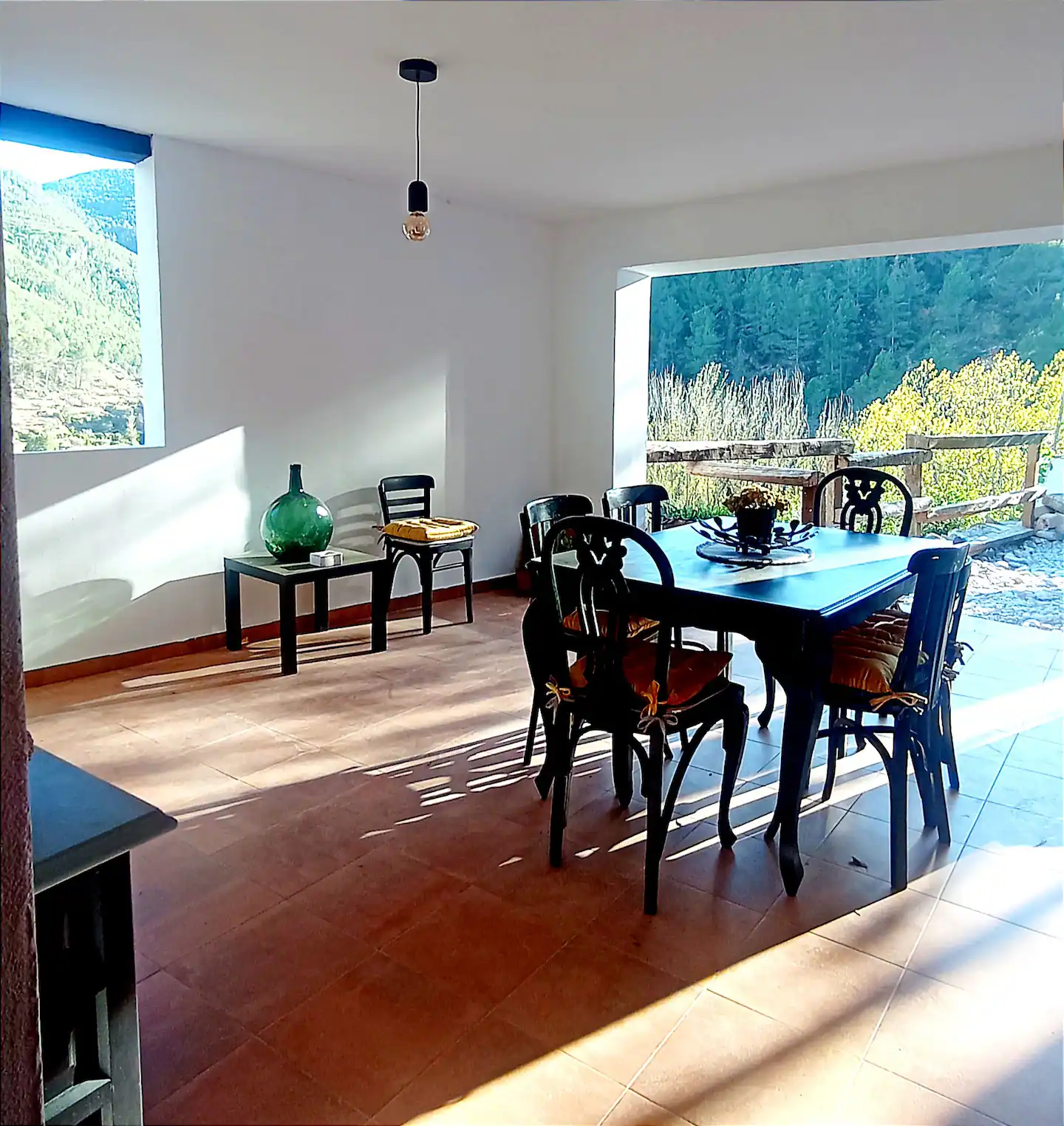 Servicios y zonas comunes: La casa dispone de todos los elementos básicos para vivir, sólo tendrás que traer tu comida y enseres de aseo personal. En la estupenda terraza exterior podrás relajarte, comer y cenar disfrutando de las vistas.